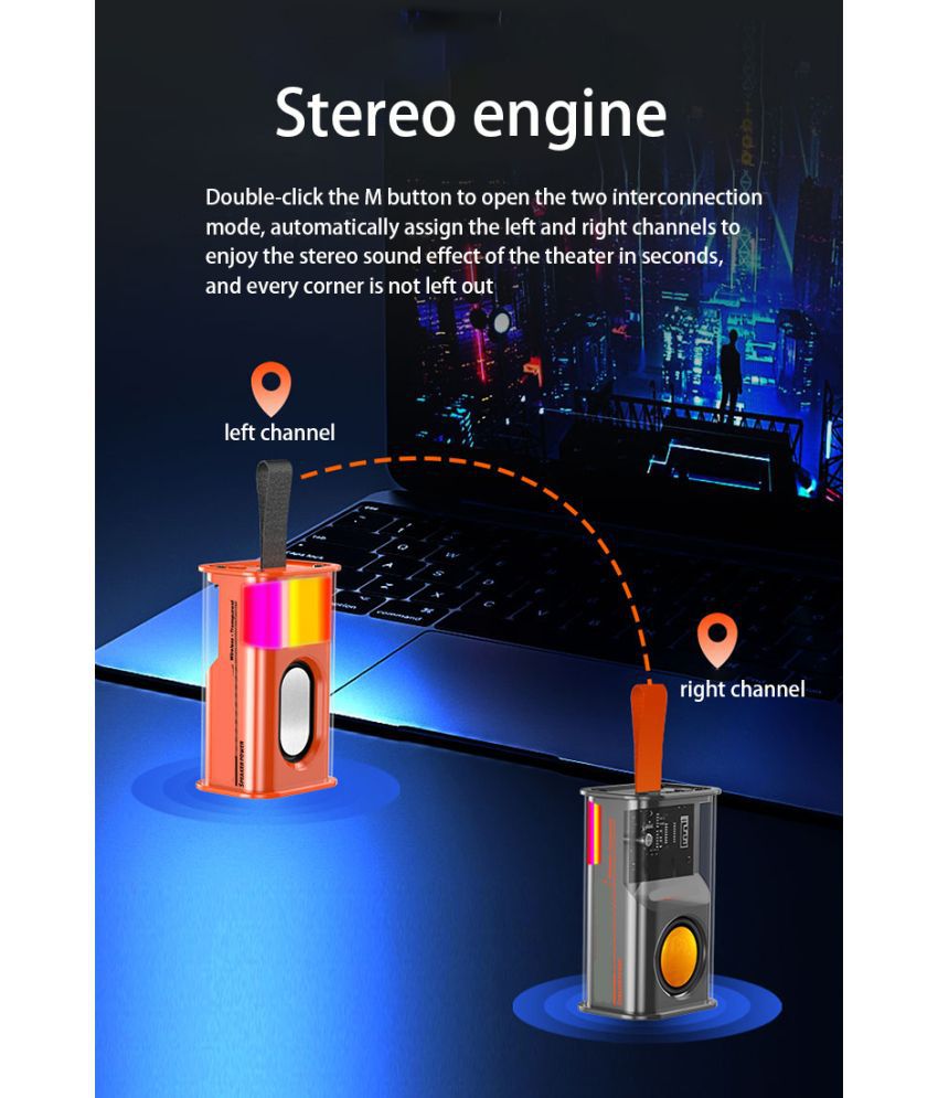 - 【Design】:The speakers have a unique Armour Transparent appearance and gorgeous LED flashing lights, combined with deep and shocking bass to give you a visual and auditory feast.